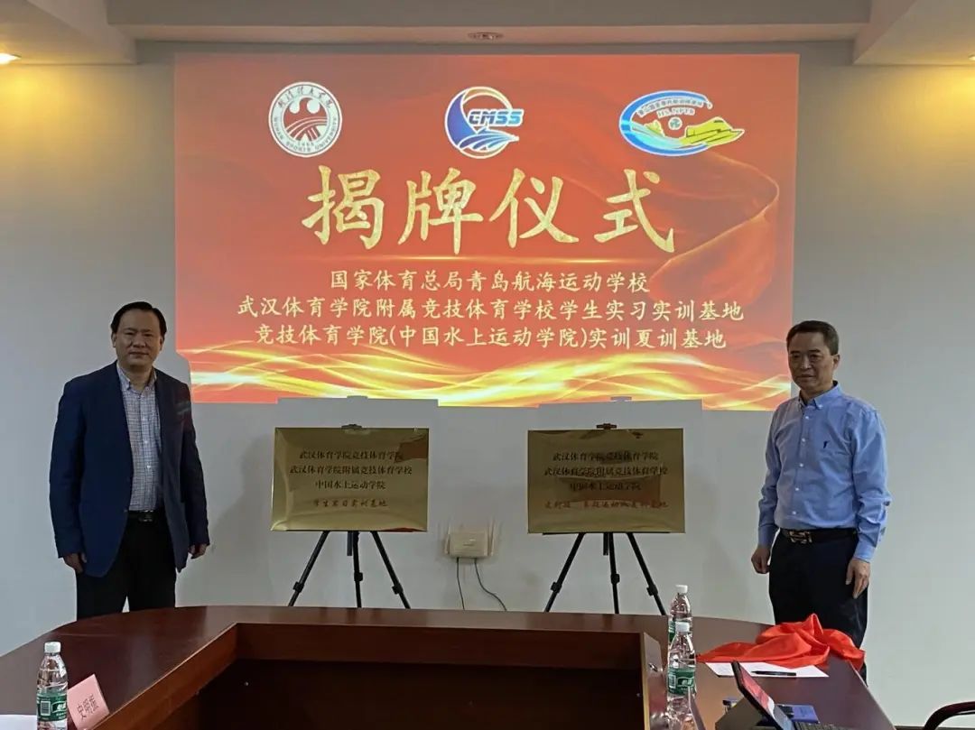 为推动水上运动快速发展,充分发挥国家体育总局青岛航海运动学校和武汉体育学院竞技体育学院的资源优势。武汉体育学院附属竞技体育学校、竞技体育学院(中国水上运动学院)学生实习实训基地和皮划艇、赛艇运动队实训夏训基地于4月17日在黄山国家摩托艇训练基地举行揭牌仪式。国家体育总局青岛航海运动学校副校长彭林武、武汉体育学院竞技体育学院院长徐伟宏共同为实训基地揭牌。
