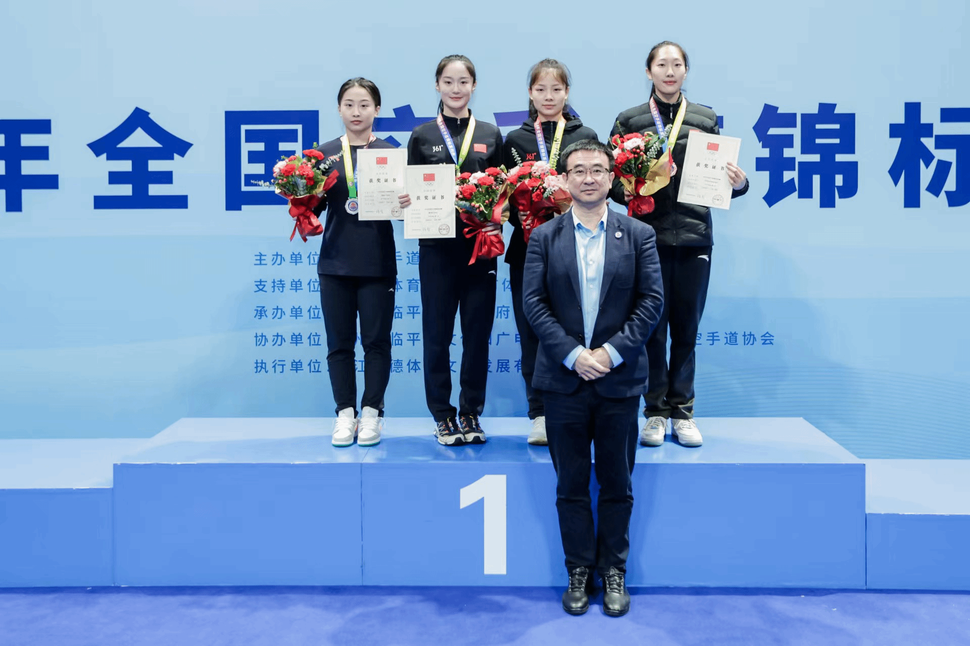 吴嘉琦、邓慕源、耿永乐、胡鑫(从左至右)获得男子团体组手银牌