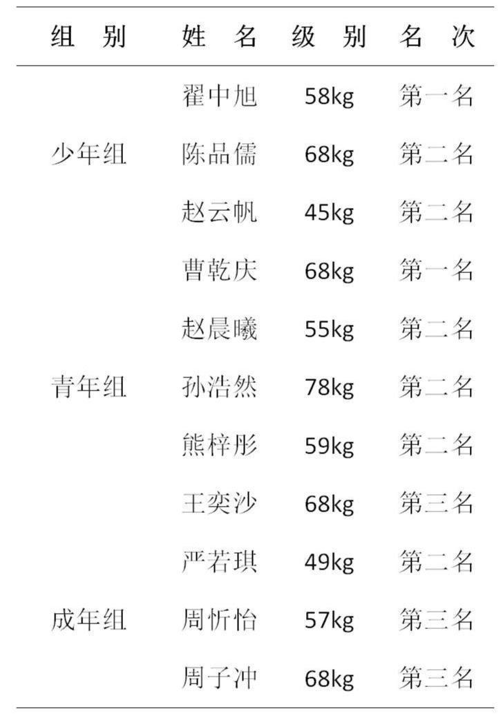 曹乾庆:青年组68kg第一名(领奖台左2)、王奕沙:青年组68kg第三名(领奖台右1)
