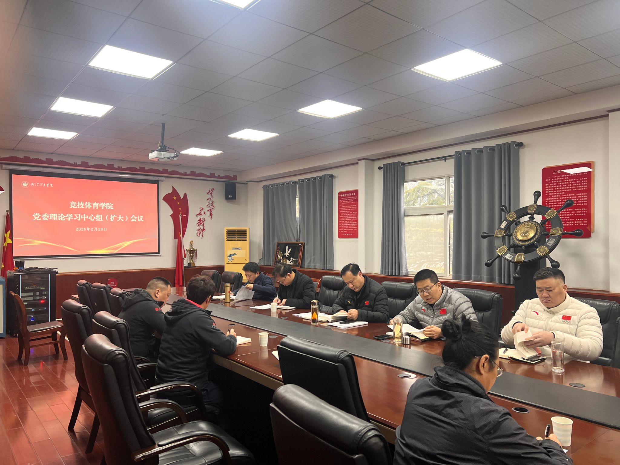 2026年2月28日上午,竞技体育学院在学院会议室召开2月份党委理论学习中心组会议。会议由学院党委书记徐法主持,学院领导班子成员参加会议。