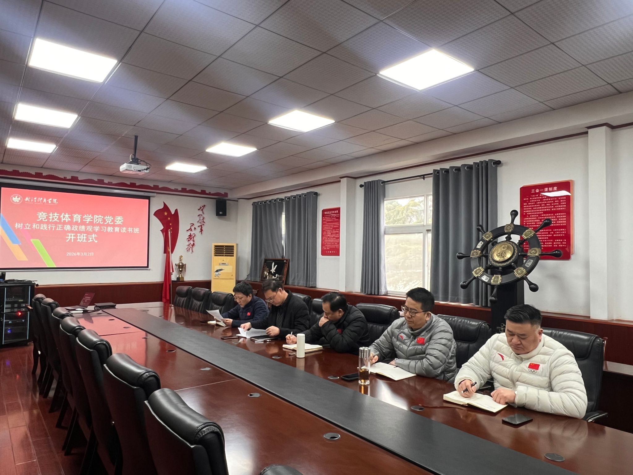 本次读书班主题鲜明、内容丰富、形式多样,采取开班动员、专题报告、集中领学、个人自学、研讨交流相结合的方式进行。3月2日上午,学院党委书记徐法作开班动员,并围绕正确政绩观的核心要义作首场专题报告,为读书班奠定了思想基础。随后几天,学员们先后听取了多场专题辅导报告,系统学习了习近平总书记历次考察湖北重要讲话精神、《教育强国建设规划纲要(2024-2035年)》《体育强国学习读本》等重要文件,深入研读了《习近平关于树立和践行正确政绩观论述摘编》各专题,以及党章党规党纪、中央关于整治形式主义为基层减负、防范化解风险等文件精神。党委委员徐伟宏、余晓波、李丹阳、姜飞分别领学相关专题,引导党员干部深刻领会正确政绩观的丰富内涵和实践要求。